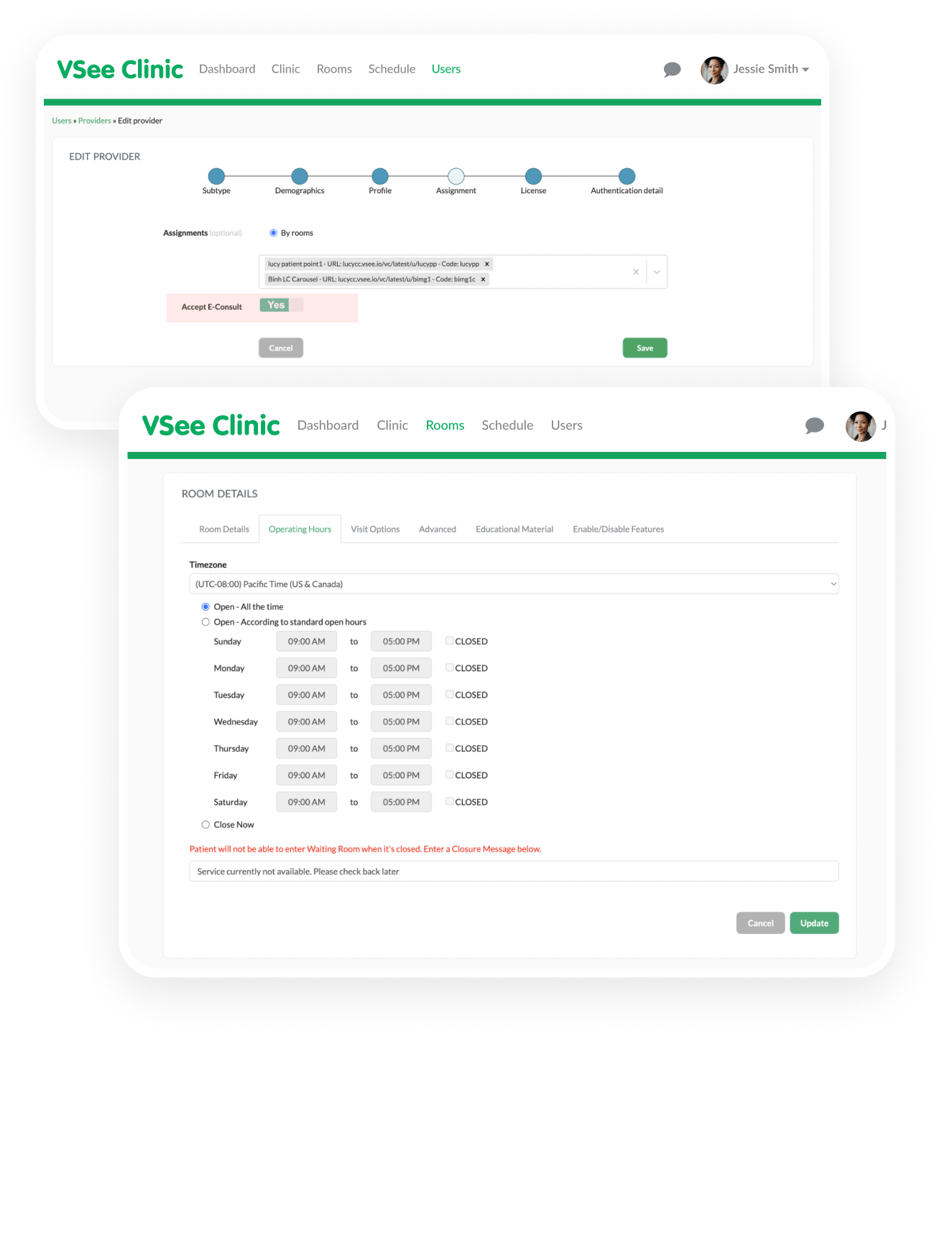 VSee empowers clinicians to be in charge of their own virtual care workflows. With easy no code toggle on and off configurations, non-programmers can make the platform adjustments they want for greater efficiency and work satisfaction.